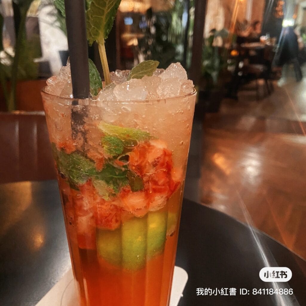 來杯清爽的草莓莫吉托(可選無酒精),明明點了少冰,還是送上滿杯冰塊和塞滿的薄荷葉。